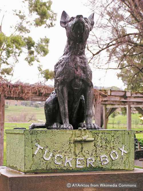 「弁当箱に乗った犬」(Dog on the Tuckerbox)は、オーストラリアの開拓者に対する敬意を象徴した伝説的な犬。