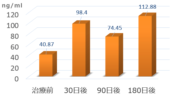 調査の対象となったのは、股関節形成不全症に関連した中等度~重度の骨関節炎を抱えた「ペロ・デ・プレサ・カナリオ」(カナリーマスティフ)という大型犬10頭。平均体重は52.8 ± 3.4 kg、平均年齢は4.7± 1.2歳です。関節炎の治療法としては、骨や軟骨を再生させる能力を持った「MSC」(間葉幹細胞)と「PRGF」をブレンドした4mlの溶解液を、無菌状態で両方の股関節に1度だけ注入するというものが採用されました。治療前、30日後、90日後、180日後というタイミングで血液サンプルを採取して「C2C」と「ヒアルロン酸」を測定すると同時に、圧力センサーを取り付けたマットの上を7mほど歩かせて歩様解析を行ったところ、以下に示すような変化が見出されたと言います。