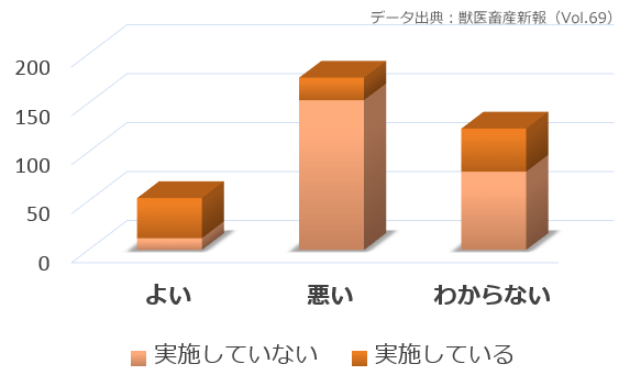 まず、声帯切除の是非について回答のあった353人の内訳は「良い」が53人(15.0%)、「悪い」が176人(49.8%)、「わからない」が124人(35.1%)、また実施状況について回答のあった357人の内訳は、「実施している」が111人(31.0%)、「実施していない」が246人(68.9%)だったといいます。