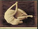 古代エジプトの墳墓からはイタリアングレーハウンドと思われるミイラが発見されており、また紀元前のローマやギリシャの遺物から、当時の貴婦人がペットとして飼育していたことが分かっています。さらにイタリア・ポンペイの遺跡(ヴェスヴィオ火山の噴火で灰に埋まった古代都市)からは鎖に繋がれたこの犬の化石(写真右)が発見されており、当時から一般に飼育されていた事がうかがえます。